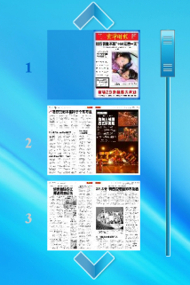 通过滚动条操作可进行快速版面选择,并且以蓝色线框表明当前阅读器所展示内容的版面,简单直观。报纸页面可以点击。