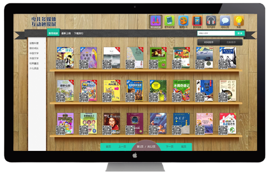 用户可在触摸屏挑选自己所喜爱的电子书刊,扫描二维码将其下载至手机,从而满足随时随地进行阅读的需求。