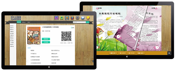提供直接在触摸屏阅读以及下载至手机阅读两种方式。既满足孩子们集体学习的需求,又迎合用户保存至手机利用碎片化时间进行阅读的多种选择。